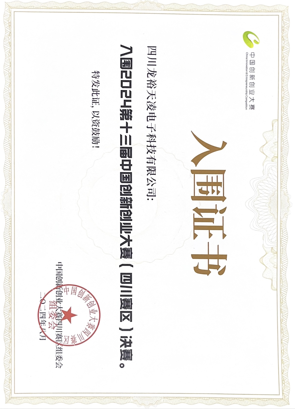 第十三届中国创新创业大赛(四川赛区)决赛入围证书