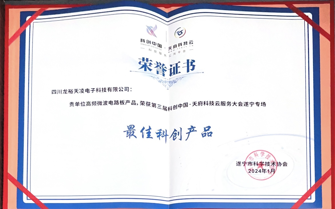 第三届科创中国天府科技云遂宁专场最佳科创产品荣誉证书